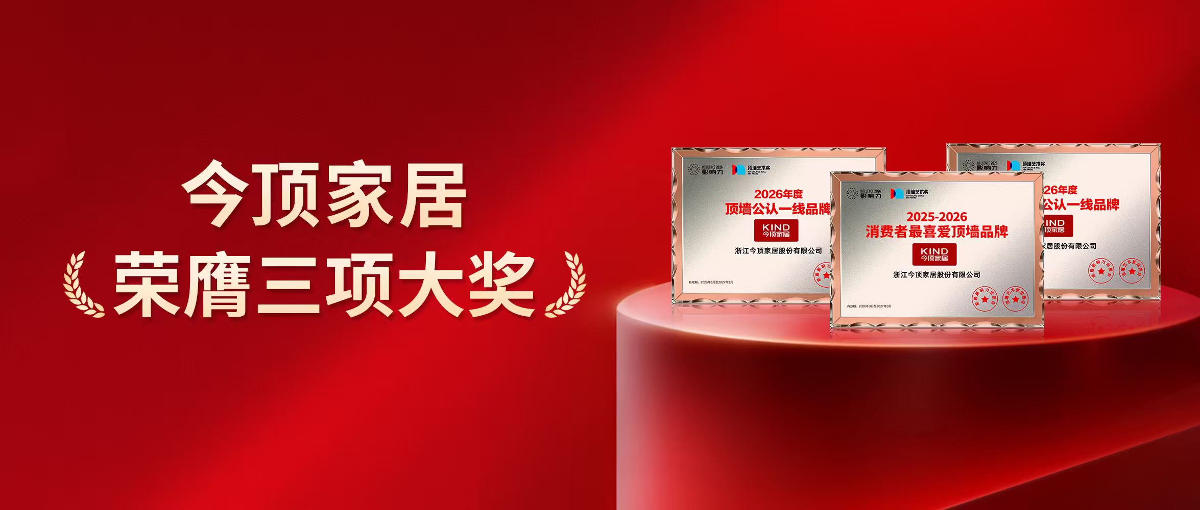 今顶不负众望,荣获中国顶墙行业领军品牌等多项荣誉。